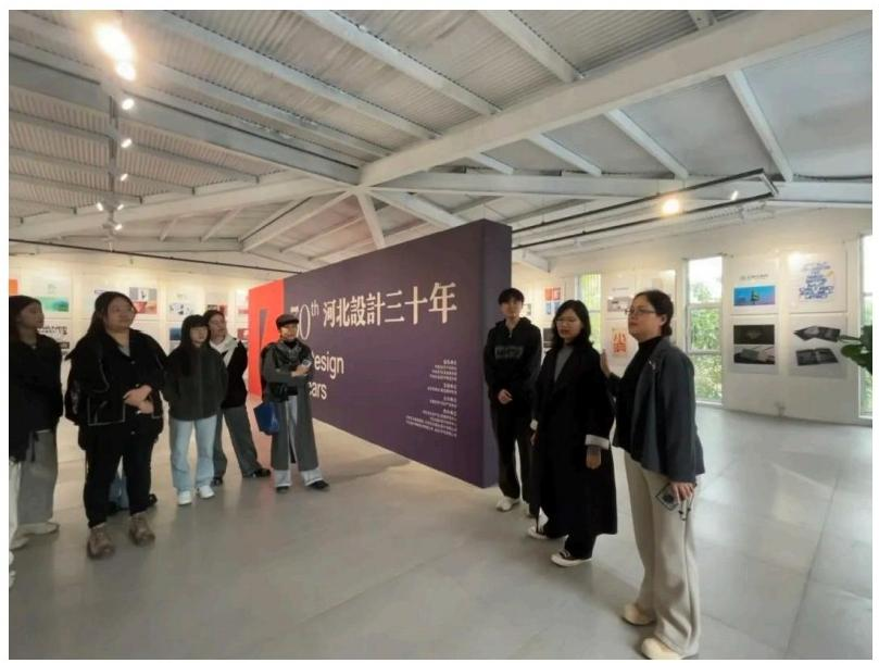 为拓宽学生视野,增进学生与实践的接轨和行业的互动,11月1日,在院长聂书法、设计系教师张伟英、韩朝阳的带领下,365完美官网设计专业研究生一行20余人到石家 庄晏钧设计有限公司进行交流学习,并参观"河北设计三十年"作品联展。