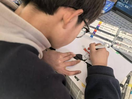 活动中,志愿者们充分发挥专业特长,同步示范、耐心指导,细致纠正握笔姿势与线条走向,从轮廓勾勒到色彩填充,在笔墨间传递尚武崇德的精神。孩子们用质朴的笔触,将武术人物的英姿飒爽跃然纸上,为人物添上大红衣袍与明黄腰带,让传统文化的温度与力量,在一笔一画中浸润童心。