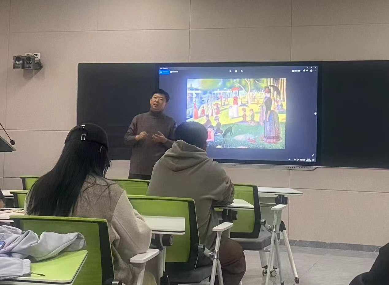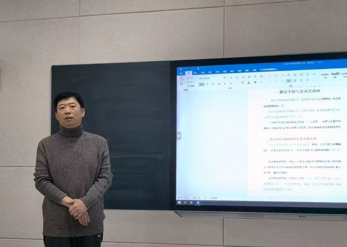 2025年11月7日下午,365完美体育绘画专业在美术楼401多媒体教室举办主题为“从中西风景油画的发展历程——解读中国写意风景油画”的教学沙龙活动。本次沙龙活动由绘画专业教师孙凤明主持,活动通过理论讲解、作品赏析的形式展开。并与师生紧密互动,就中国写意风景油画的特征、发展现状及发展前景进行了深入学术讨论,现场学术气氛热烈。
