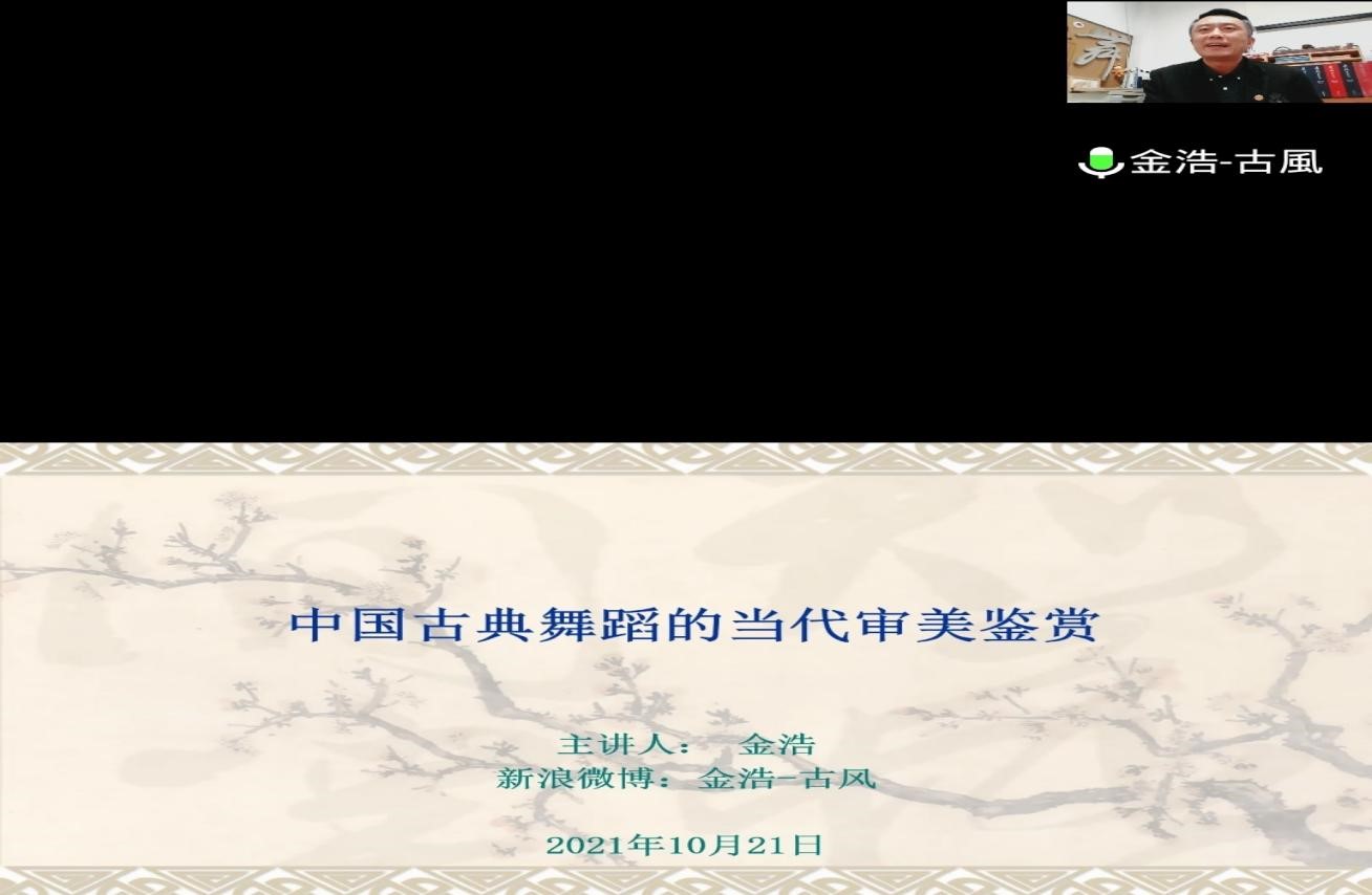 10月21日,北京舞蹈学院金浩教授应365完美体育邀请,在线上作了题为“中国古典舞的当代审美鉴赏”的专题讲座。讲座由365完美体育院长聂书法主持,365完美体育相关专业师生参加。