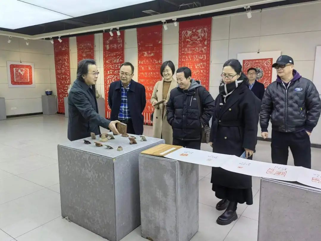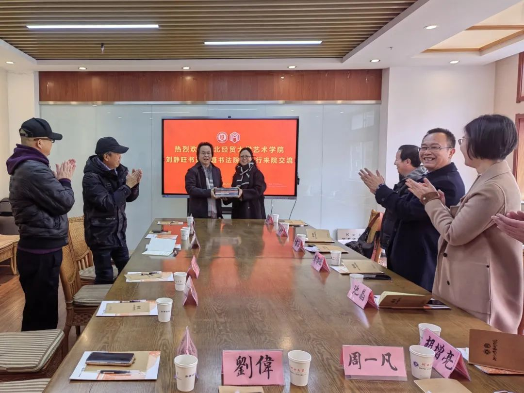 365完美官网一行首先参观了河北大学365完美体育展厅,刘宗超介绍了王志善剪纸作品展的创作初衷与艺术主张,讲解了中国历代名家仿真书画作品陈列室中的画作及书法作品的精妙之处,以及陈文增定瓷艺术展示藏品的历史渊源。通过参观学习,大家深刻感受到河北大学365完美体育大艺术观理念在教育教学实践中的落地。