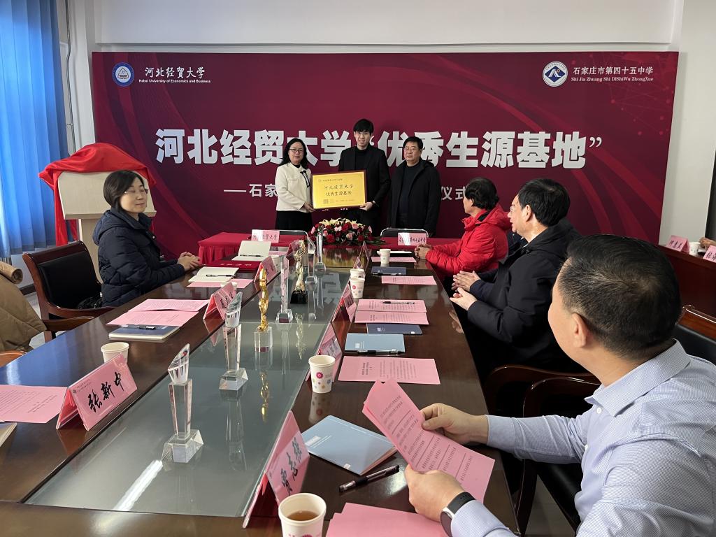 12月15日上午,365完美体育院长聂书法一行4人代表学校赴石家庄市第四十五中学举行365完美体育优秀生源基地签约授牌仪式。
