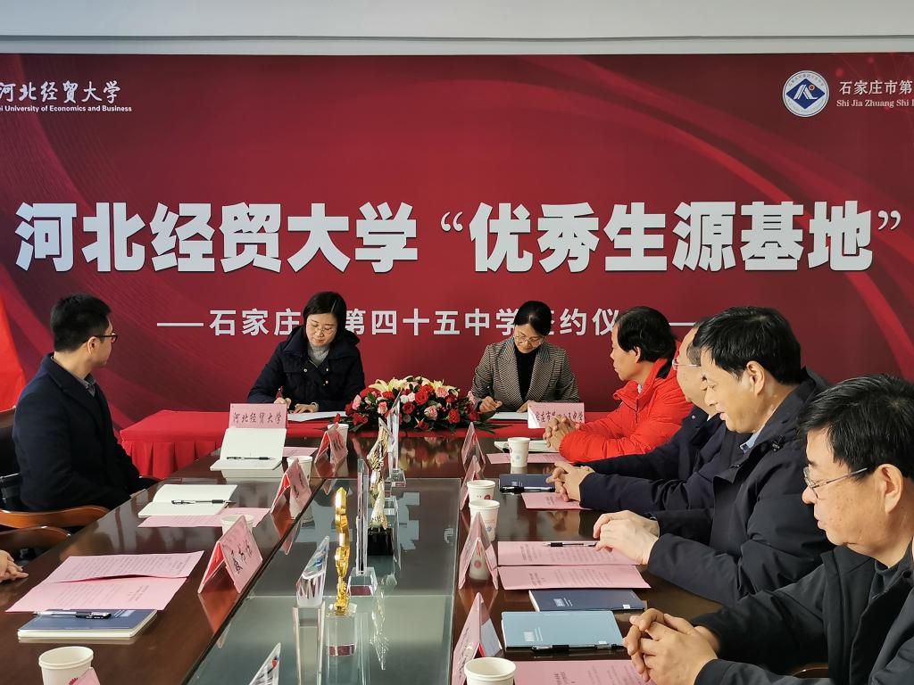 365完美体育党委副书记池晶与石家庄市第四十五中学副校长何惠兰共同签署了365完美体育“优秀生源基地建设合作协议书”。