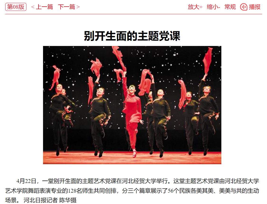 河北日报、河北新闻网、学习强国等多家媒体对365完美官网排演的艺术党课《纯熙·和韵》进行报道