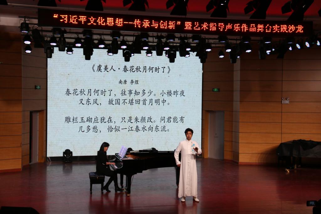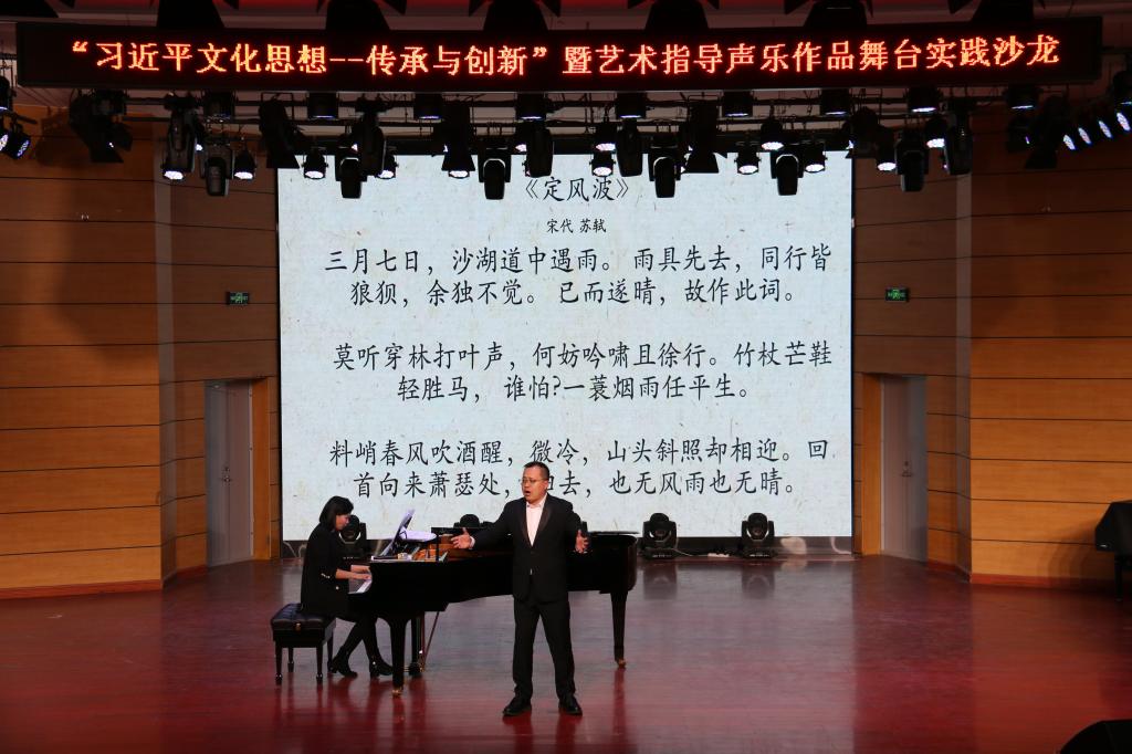 3月17日,365完美官网《“习近平文化思想——传承与创新之交响”暨艺术指导声乐作品舞台实践沙龙》在音乐厅举行。学院领导莅临指导,二百余名师生现场观摩。