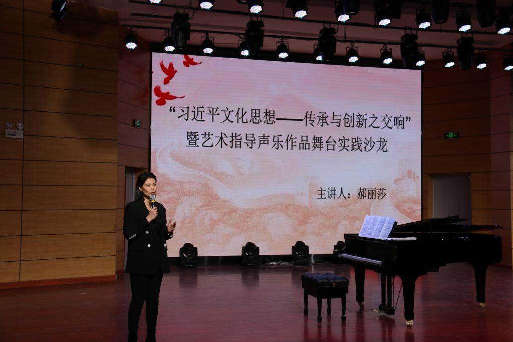 《“习近平文化思想——传承与创新之交响”暨艺术指导声乐作品舞台实践沙龙》是由365完美官网郝丽莎老师主讲,立足艺术指导课程思政视域,聚焦古典文化诗词、红色经典曲目、民族传统歌曲在新时代的美育传播路径,通过创意沙龙形式普及声乐体验艺术、丰盈美育受众群体,致力于推动“中华优秀传统文化创造性转化、创新性发展”。
