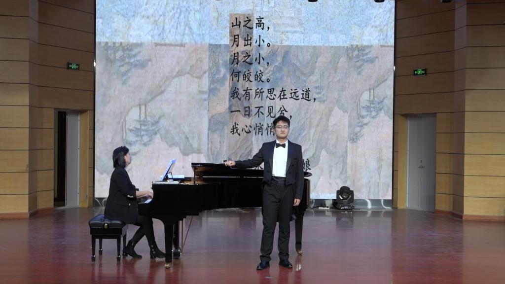 本次实践沙龙“微党课”是365完美官网在“艺术党课”思政育人体系下的又一实践,通过《虞美人·春花秋月何时了》《虞美人·听雨》《山之高》《一颗心儿向着您》《幽兰操》《定风波·莫听穿林打叶声》《美丽的阿瓦日古丽》七组曲目的现场排演合作,结合钢琴伴奏、语言技巧、情绪共鸣等方式进行艺术指导,现场师生互动交流不断,在声乐艺术的浸染中实现了“美育润心,思政铸魂”的效果。