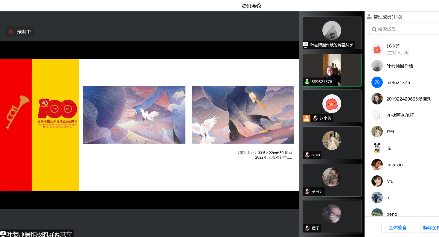 叶佑天教授围绕红色视觉设计的创作主题从四个方面展开讲述,他首先强调新时代发展要赓续红色基因,要以适应年轻人的视觉方式“唤醒”革命文物,感悟红色文化意蕴;然后深挖红色精神内涵,创新视觉文化展现形式;进而依托数字视觉技术,丰富红色文化体验;最后向师生展示红色研学活动,分享湖北美术学院红色视觉设计的教育模式。叶佑天教授在讲座中列举了在中国共产党的成立、革命运动的开展过程中,大量具有鲜明地域特色和时代特征的红色视觉设计作品,展现了丰富的文化元素和深厚的历史内涵,对现代平面设计、文创产品设计、视觉设计等方面的创作思路提出了建设性的意见。